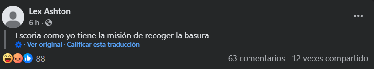 A las 10:12 compartió el mensaje: “Escoria como yo tiene la misión de recoger la basura” y a las 10:20 publicó una selfie con la misma sudadera.