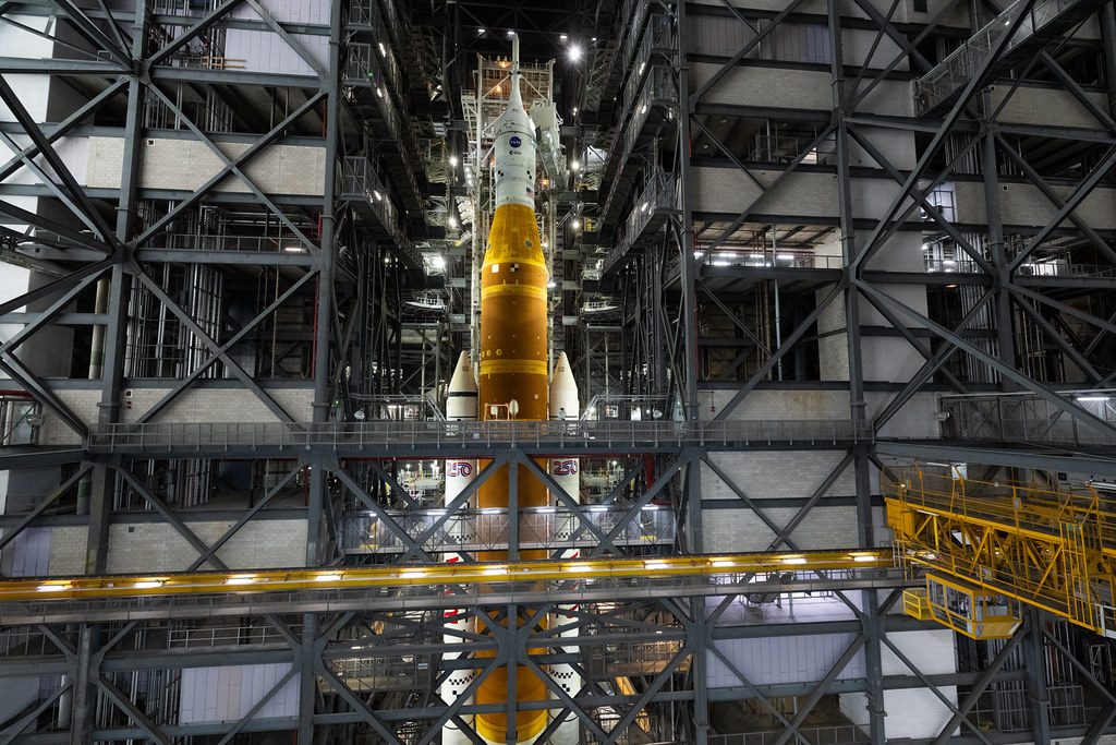 El traslado comenzó a las 12:20 de la madrugada, hora del este de Estados Unidos, y tomó unas 11 horas. Sobre el crawler-transporter 2, el gigantesco vehículo que mueve los sistemas de lanzamiento de la NASA, el conjunto integrado del SLS y Orion recorrió cerca de cuatro millas hasta la plataforma a una velocidad máxima de apenas 0.82 millas por hora. La operación había sido retrasada previamente por fuertes vientos en la zona.