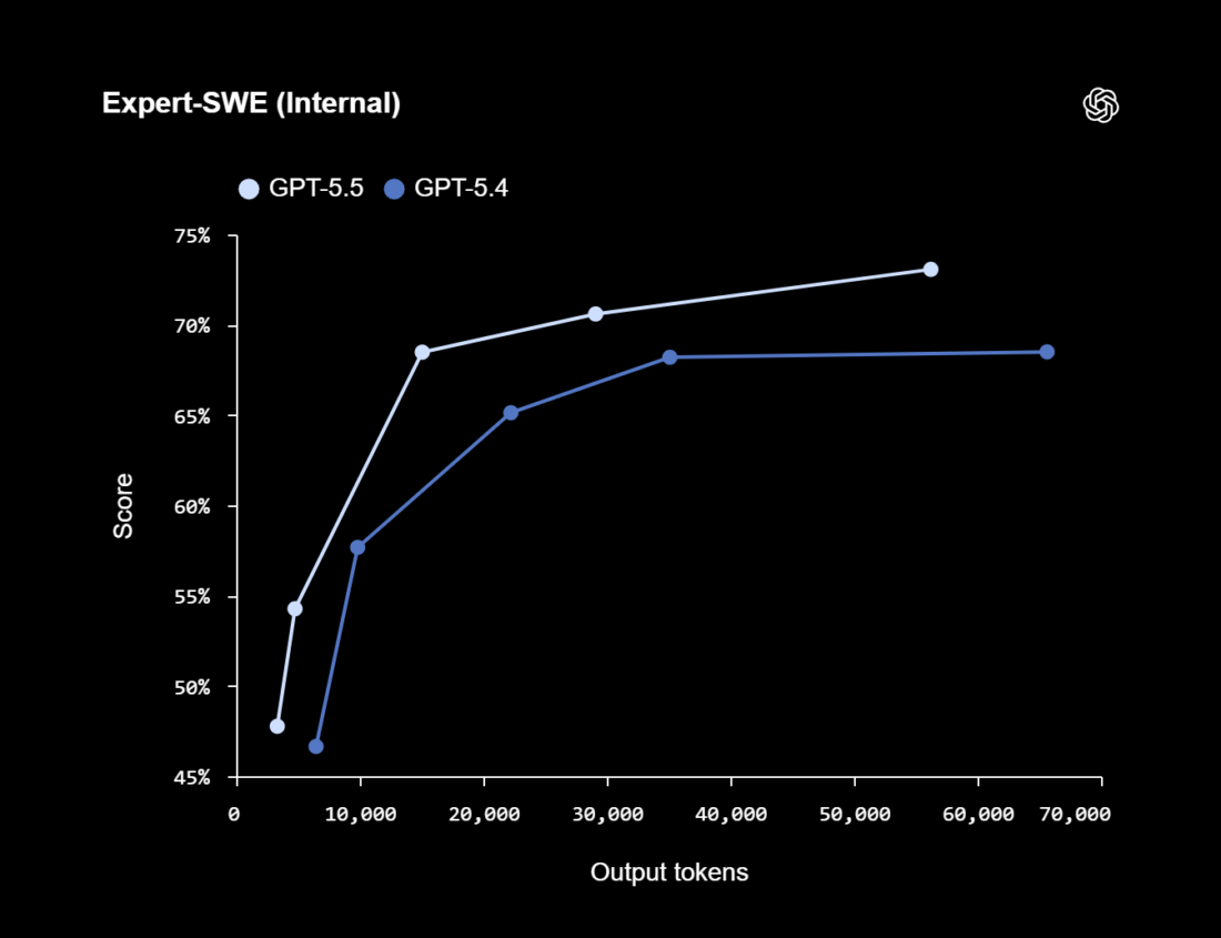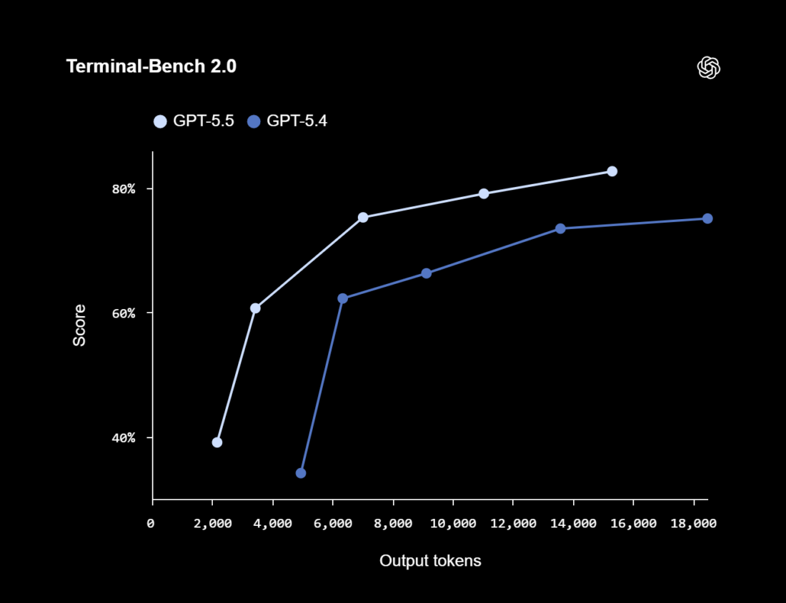 OpenAI destacó que GPT-5.5 ha sido sometido a tres pruebas donde ha superado GPT-5.4 con un uso optimizado de tokens: